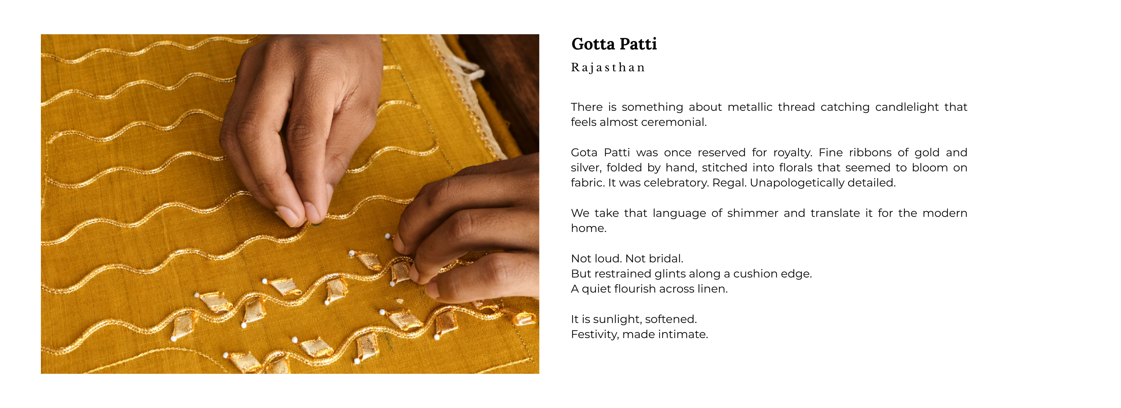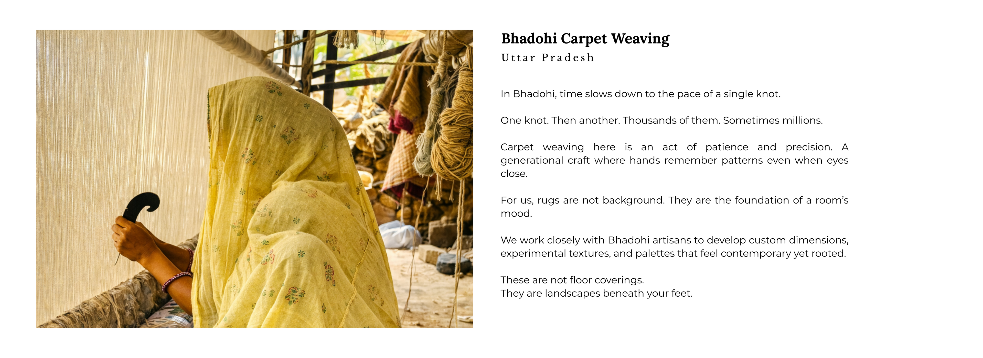 What this really means is this: every piece we design carries the quiet wisdom of centuries-old craft traditions from India’s villages and weaving clusters. And every piece is refined with thoughtful design so it belongs in a modern home without losing its soul.