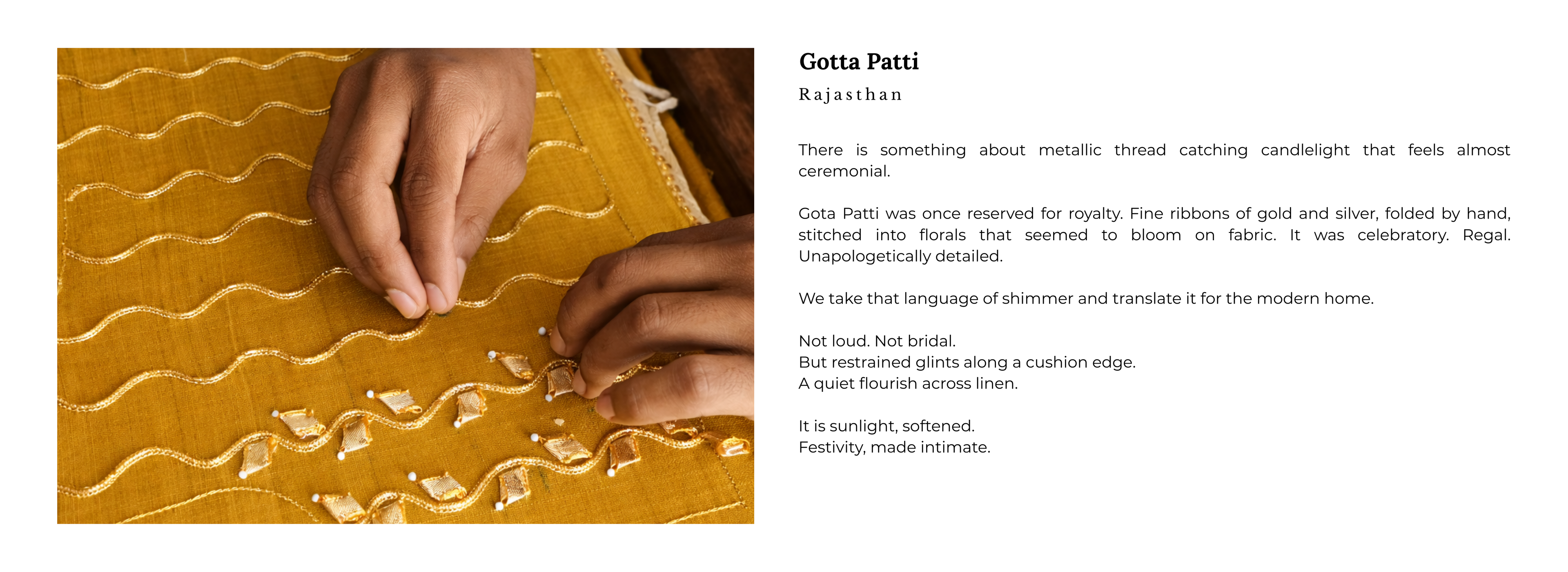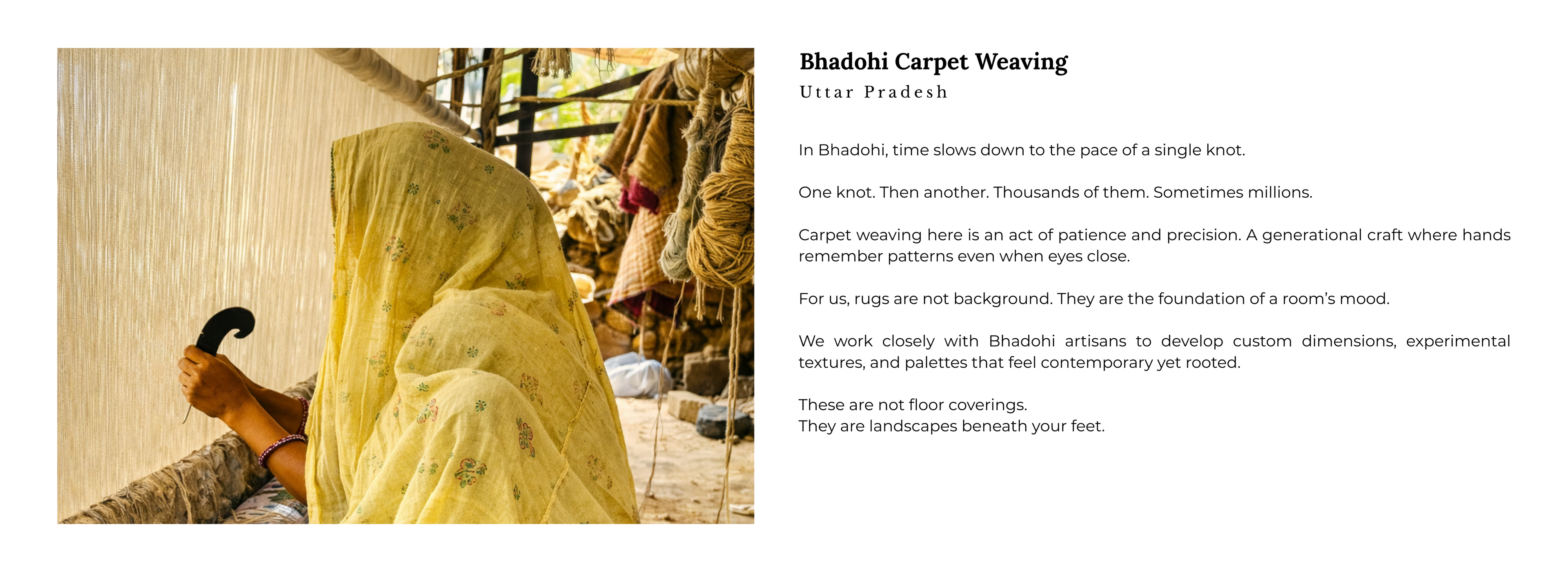 What this really means is this: every piece we design carries the quiet wisdom of centuries-old craft traditions from India’s villages and weaving clusters. And every piece is refined with thoughtful design so it belongs in a modern home without losing its soul.
